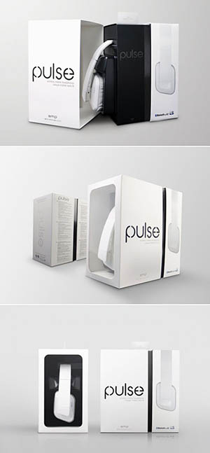 3. 這款耳機包裝盒體積較大,很容易給人以笨重的感覺,所以設(shè)計師利用特別的開蓋方式,以及分明的黑色和白色,將整體從視覺上分成了兩半,面積較大的一面印刷文字,較小的一面印刷耳機的一半實物圖,互相平衡。側(cè)面開窗,可以看到里面裝的耳機,減少了包裝盒的沉悶感。