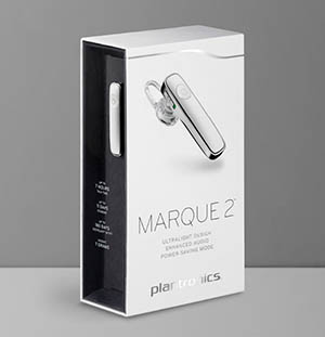 2. 從藍(lán)牙耳機的顏色和質(zhì)感出發(fā),包裝盒使用了白色底,灰色和燙銀的文字,產(chǎn)品實物圖占盒子正面的一半,與下方的文字和上方的線條排版十分恰到好處,畫面簡潔協(xié)調(diào)。