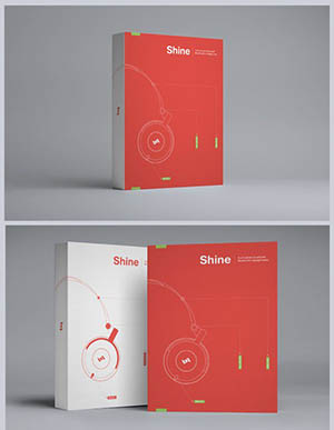 4. 與以上三款不同,這款包裝盒顏色使用了紅色和綠色,增添了時尚的氣息,耳機以簡筆輪廓的形式出現(xiàn)在正面,再加上線條和注釋,使真?zhèn)€耳機包裝盒融入了科技感。